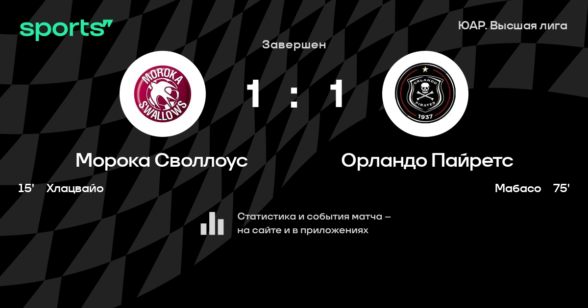 Морока Своллоус – Орландо Пайретс: Орландо Пайретс не проигрывает в 6 из 8 последних матчей против этого соперника в гостях в турнире «ЮАР. Высшая лига»
