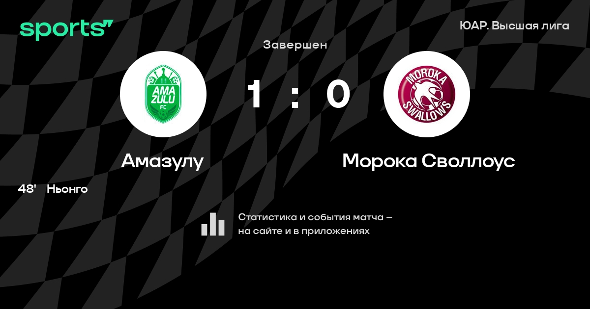 Амазулу – Морока Своллоус: Морока Своллоус не проигрывает в 5 последних матчах против этого соперника в турнире «ЮАР. Высшая лига»