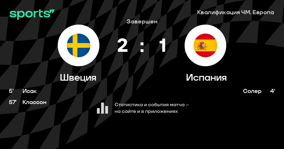 Швеция – Испания: Швеция не проигрывает в 6 из 7 последних матчей против этого соперника дома