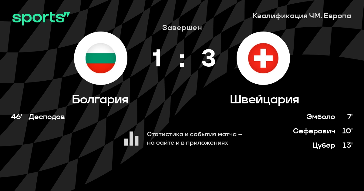 Болгария – Швейцария: Швейцария не проигрывает в 5 из 6 последних матчей против этого соперника