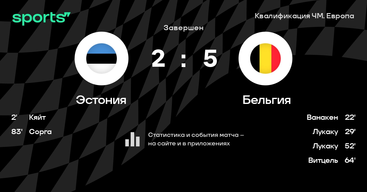 Эстония – Бельгия: Бельгия не проигрывает в 5 из 6 последних матчей против этого соперника