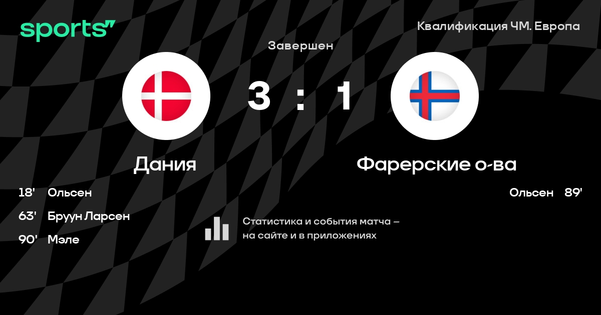 Дания – Фарерские о-ва: Дания не пропускает в 3 последних матчах против этого соперника