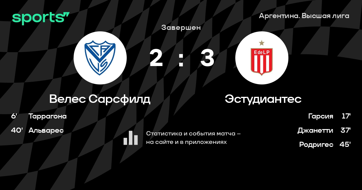Трансляция Велес Сарсфилд - Эстудиантес