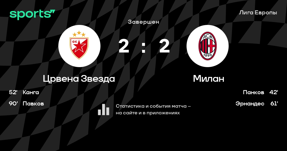 «Милан» пропустил от «Црвены Звезды» на 93-й минуте (2:2), сербы играли вдесятером
