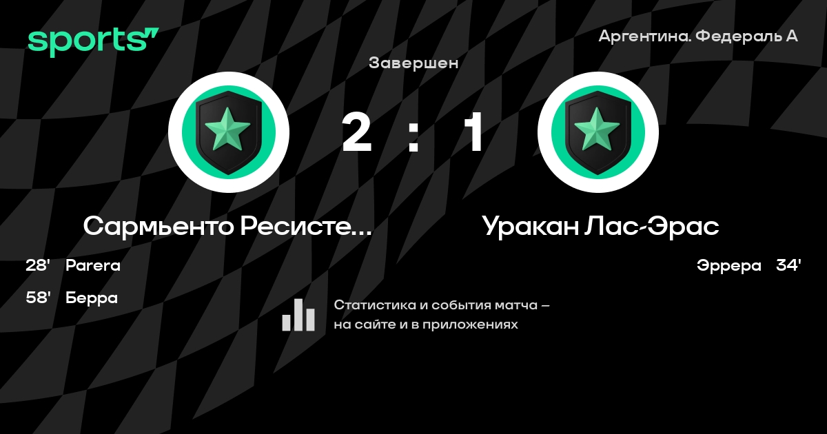 Сармьенто Ресистенсия - Уракан Лас-Эрас: статистика матча