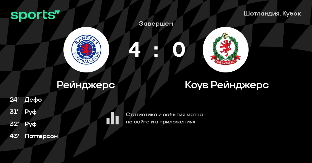 Маклафлин - Басси, Хеландер, Голдсон, Паттерсон - Камара, Дэвис, Арфилд - Руф, Дефо, РайтЗапасные: Макгрегор, Балогун, Симпсон, Арибо, Хаджи, Стюарт, Иттен, Кент, Морелос