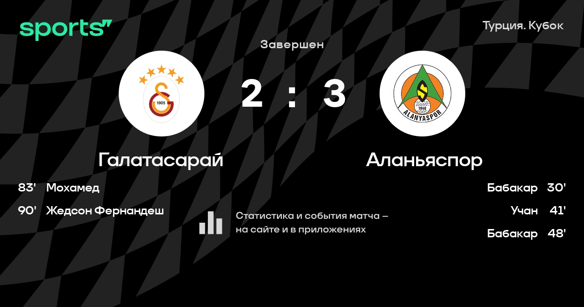 Муслера - Ташдемир, Маркао Тейшейра, Донк, Йедлин - Бабел, Антальялы, Кылынч, Бельханда, Оньекуру - МохамедЗапасные: Озтюрк, Озбайраклы, Луйиндама, Линнес, Байрам, Жедсон Фернандеш, Акбаба, Этебо, Чаглаян, Актюркоглу