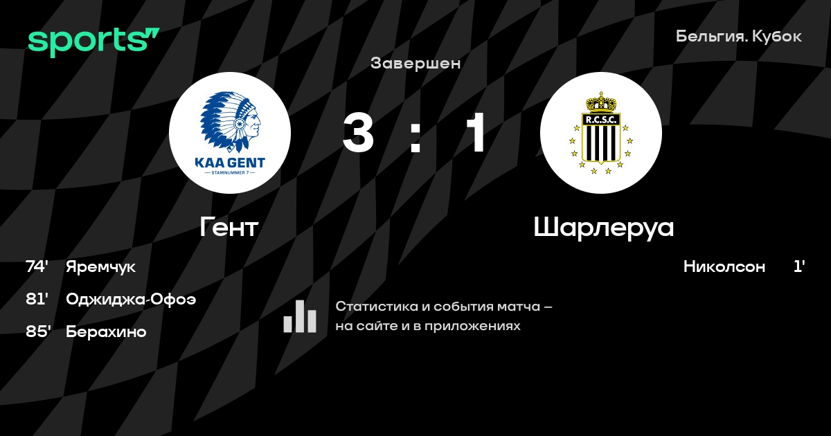 «Стандард» вырвал победу у «Шарлеруа» в валлонском дерби, а «Брюгге» дожал «Генк» и оторвался от него уже на 12 очков