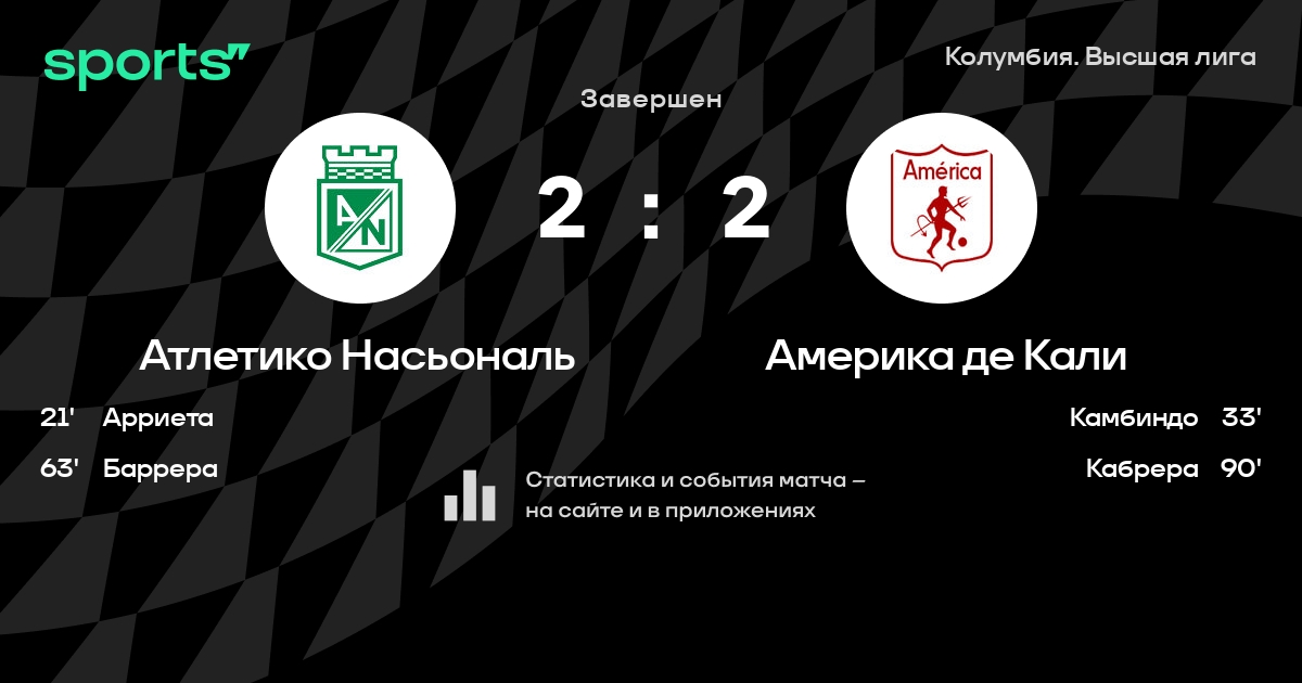 | 1 | Атлетико Насьональ | 20 | 12 | 6 | 2 | 32 | 13 | +19 | 42 | ||