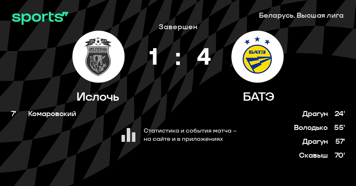 Ислочь – БАТЭ: БАТЭ забивает в 4 последних матчах против этого соперника