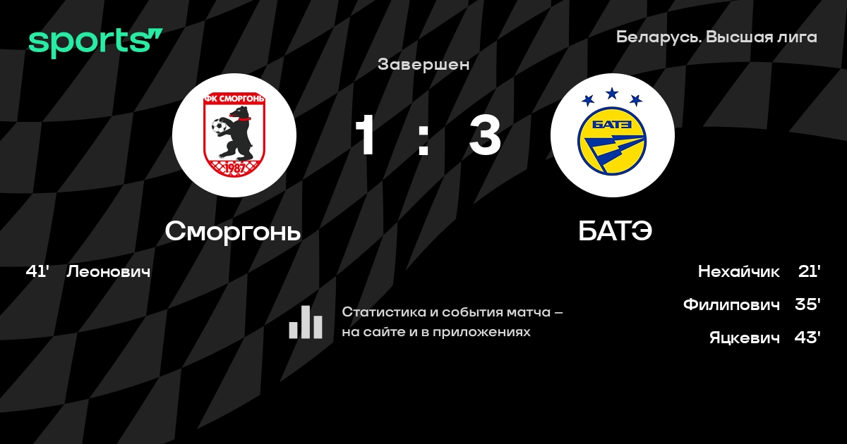 Сморгонь – БАТЭ: БАТЭ не проигрывает в 6 последних матчах против этого соперника