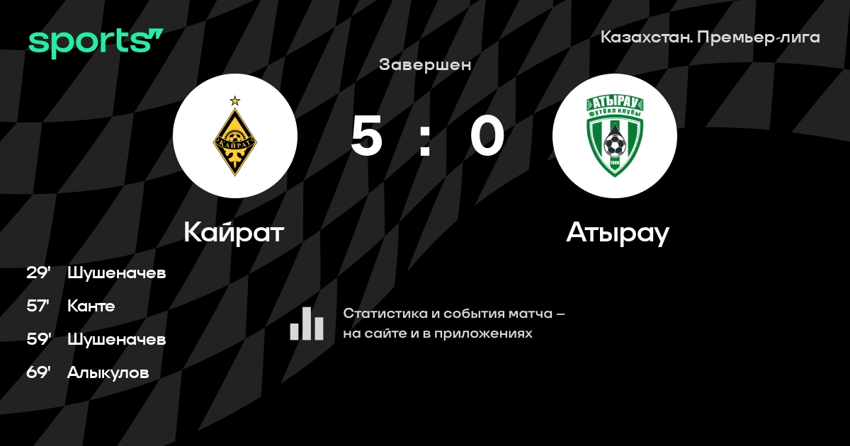 «Кайрат» прошелся по «Атырау». Дубль оформил Шушеначев