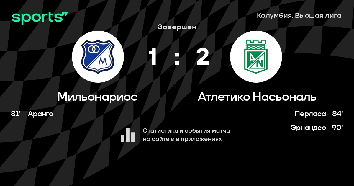 Трансляция Мильонариос - Атлетико Насьональ