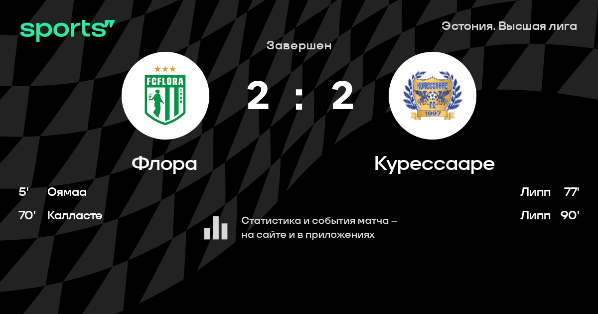 Флора – Курессааре: Флора забивает в 21 из 23 последних матчей против этого соперника