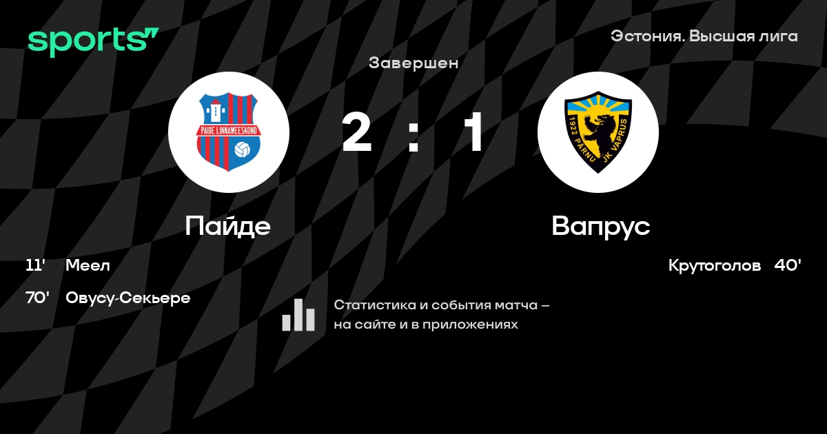 Пайде – Вапрус: Пайде побеждает в 3 последних очных матчах