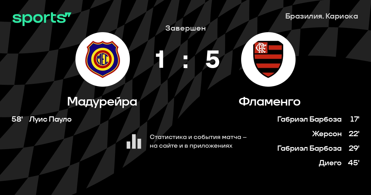 Диего Алвес - Родриго Кайо, Исла, Филипе Луис - де Арраскаэта, Диего, Жерсон, Арао, Эвертон Рибейро - Габриэл Барбоза, Бруно ЭнрикеЗапасные: Уго Соуза, Лео Перейра, Рене, Густаво Энрике, Бруно Виана, Жоао Лукас, Гомес, Уго Моура, Пепе, Витиньо, Майкл Ричард, Родриго Муниз
