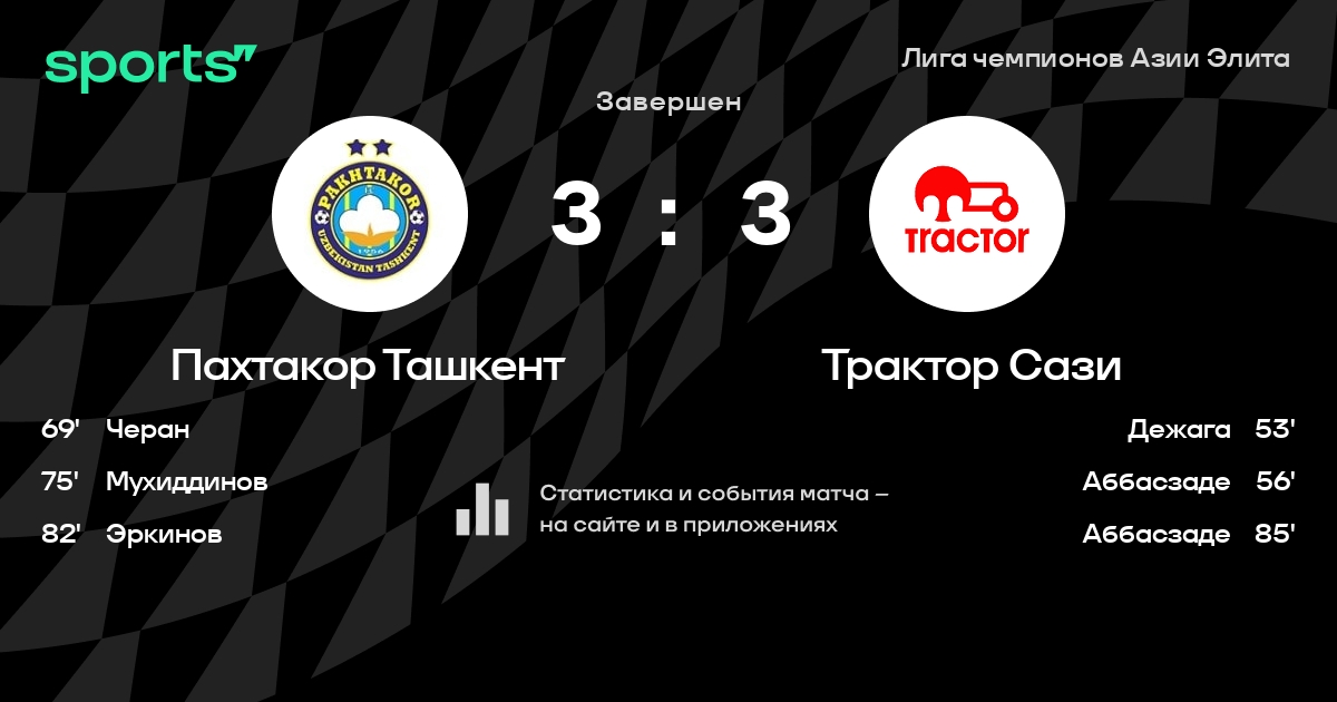 Трансляция Пахтакор Ташкент - Трактор Сази