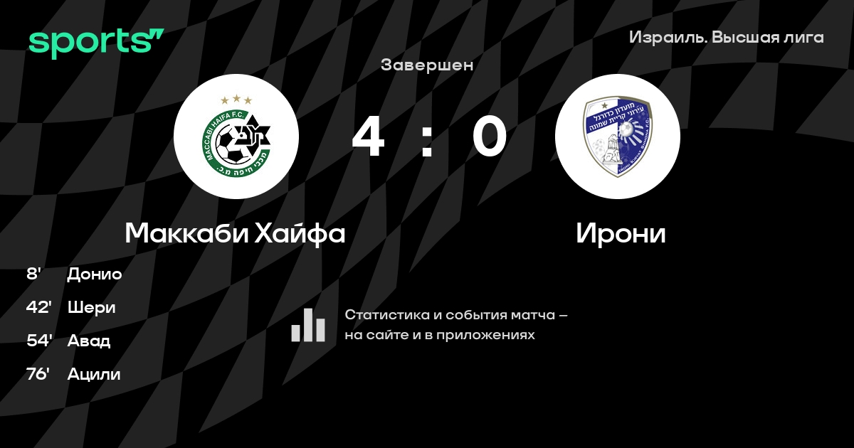 Маккаби Хайфа – Ирони: Маккаби Хайфа не проигрывает в 6 последних матчах против этого соперника.