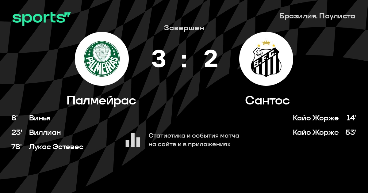Сантос не выигрывает в 5 последних матчах в гостях в турнире «Бразилия. Паулиста»