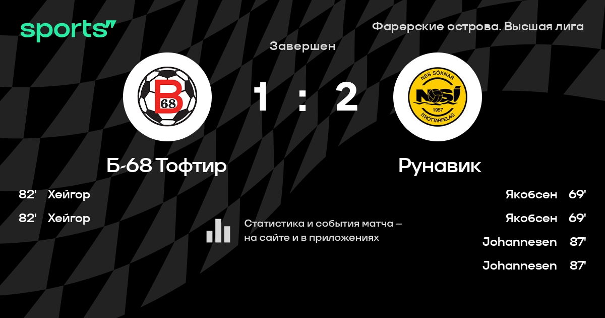 Б-68 Тофтир – Рунавик: Рунавик забивает в 7 последних матчах против этого соперника