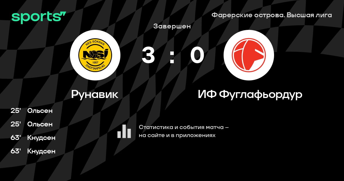 Томсен - Хентце, Давидсон, Хейгор - Кнудсен, Хансен, Якобсен, Нильсен - Кнудсен, Ольсен, ТренсковЗапасные: Даниэльсен, Якобсен, Скипанес, Мортенсен, Эгильссон, Йенсен, Нильсен