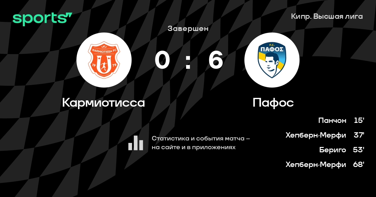 Кармиотисса – Пафос: Пафос забивает в 5 из 6 последних матчей против этого соперника