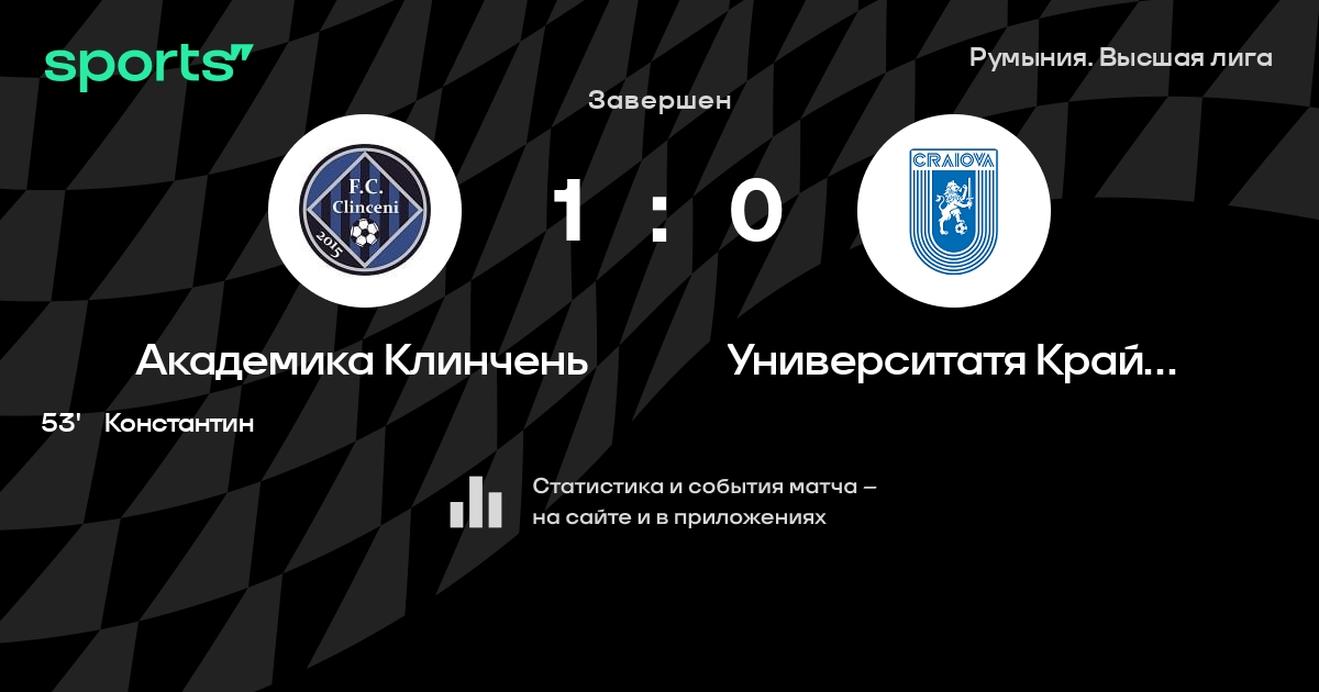 Академика Клинчень – КСУ Крайова: Академика Клинчень не пропускает в 3 последних матчах против этого соперника