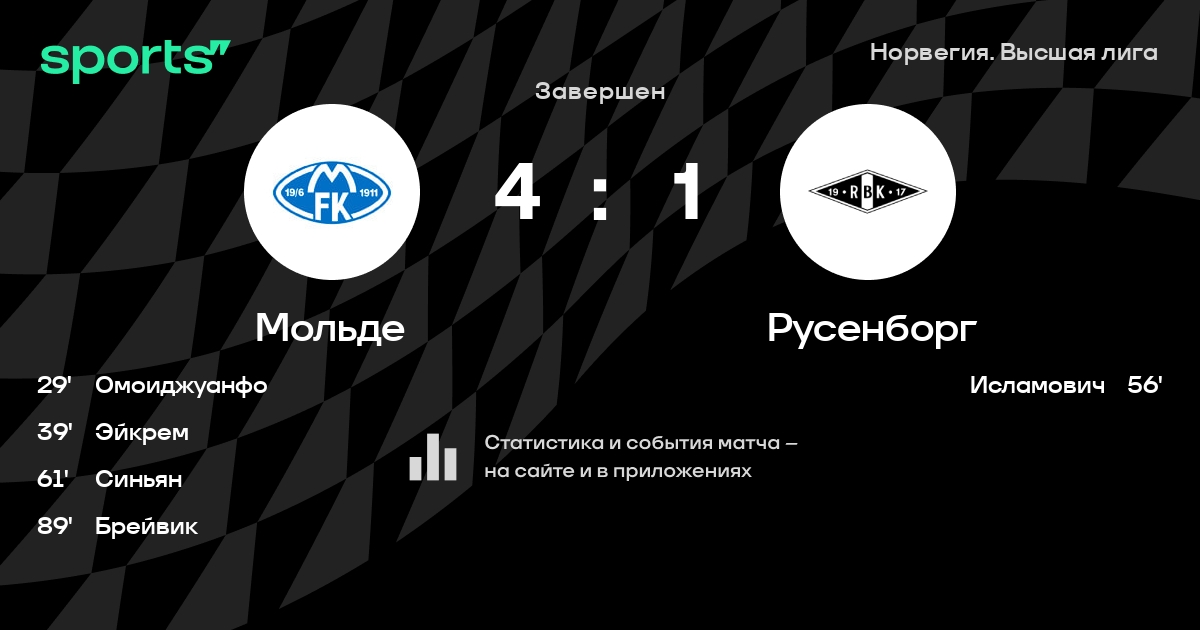 Мольде – Русенборг: Мольде забивает в 6 последних матчах против этого соперника