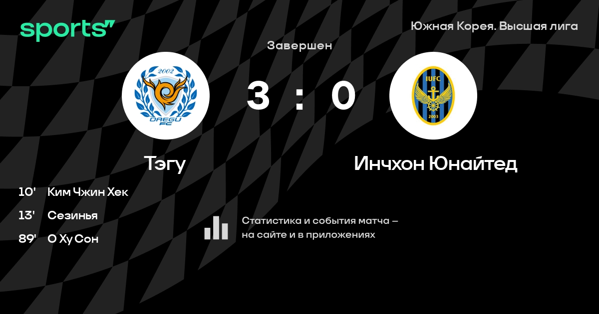 Тэгу – Инчхон Юнайтед: Инчхон Юнайтед побеждает в 3 последних очных матчах в турнире «Южная Корея. Высшая лига»