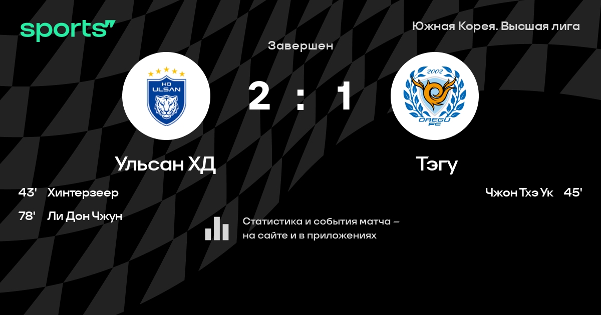 Ульсан Хендай – Тэгу: Ульсан Хендай не проигрывает в 7 из 9 последних матчей против этого соперника
