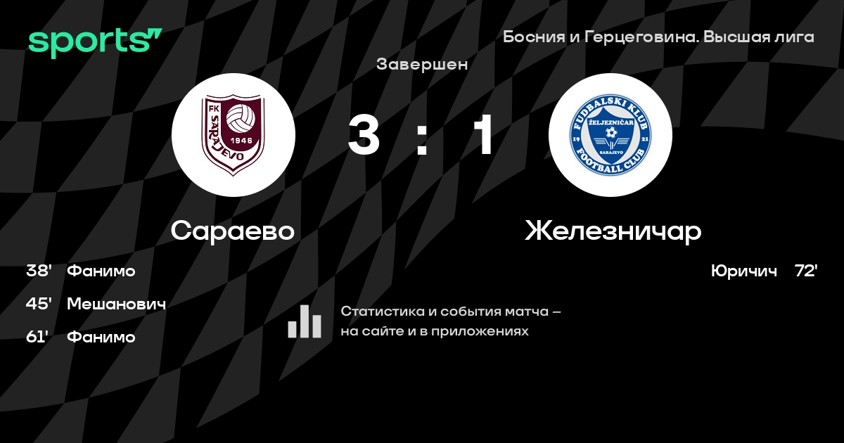 Сараево – Железничар: Железничар не проигрывает в 6 последних матчах против этого соперника в турнире «Босния и Герцеговина. Высшая лига»