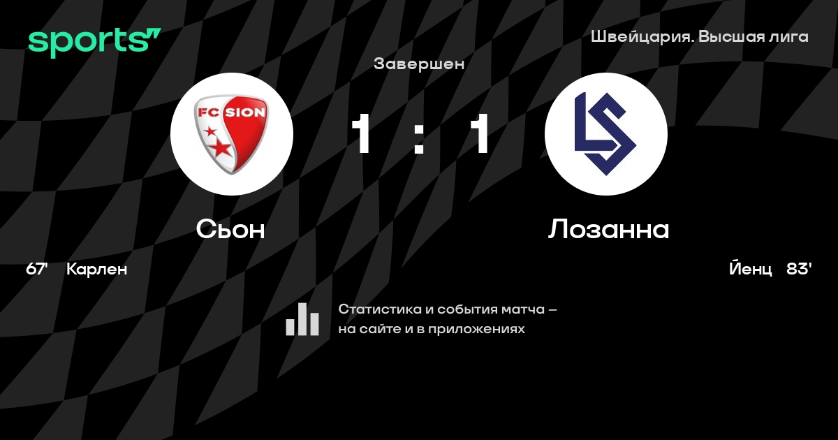 Сьон – Лозанна: Лозанна не проигрывает в 5 из 7 последних матчей против этого соперника в гостях в турнире «Швейцария. Супер Лига»