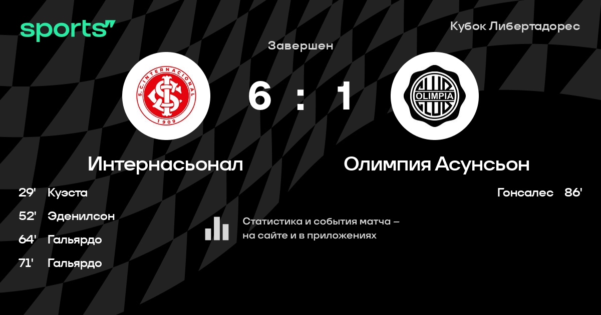 Интернасьонал – Олимпия Асунсьон: Интернасьонал забивает в 4 последних матчах против этого соперника