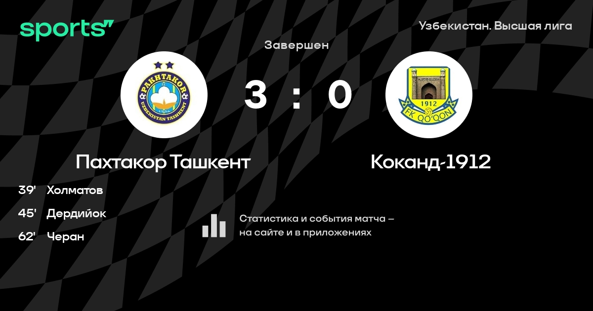 Пахтакор Ташкент – Коканд-1912: Пахтакор Ташкент забивает в 15 последних матчах против этого соперника