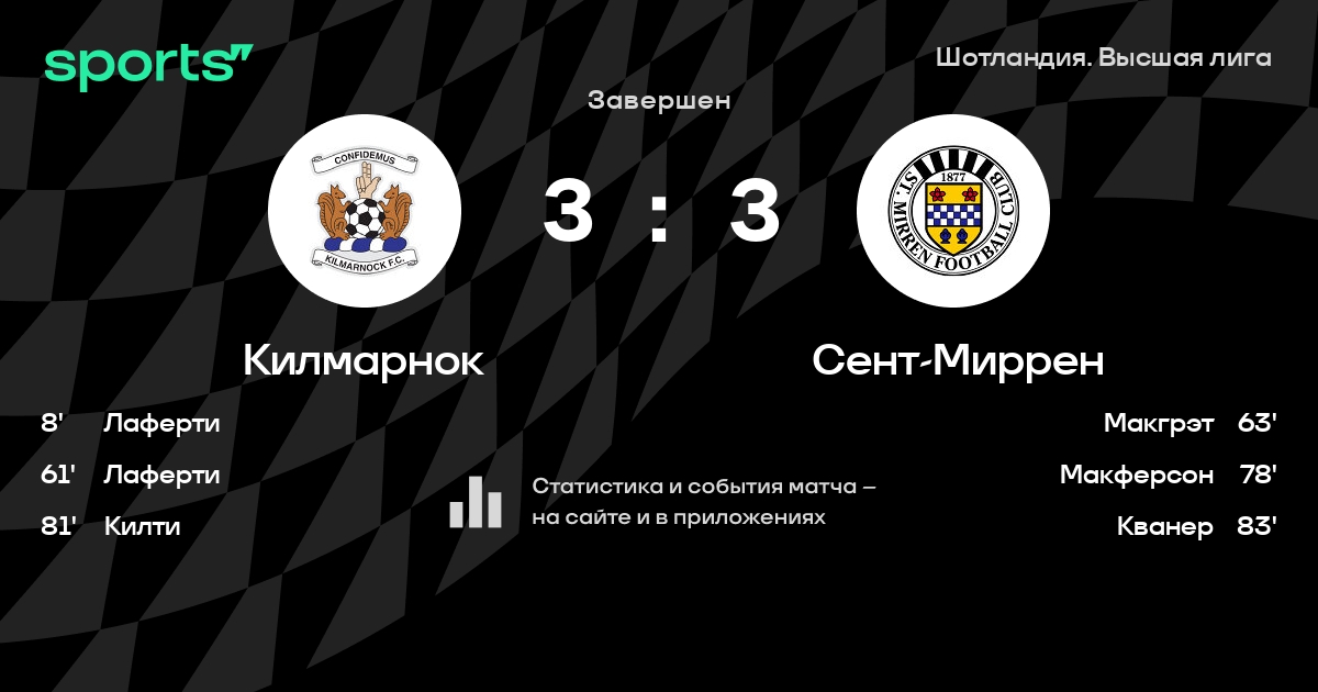 Килмарнок – Сент-Миррен: Сент-Миррен забивает в 3 последних матчах против этого соперника