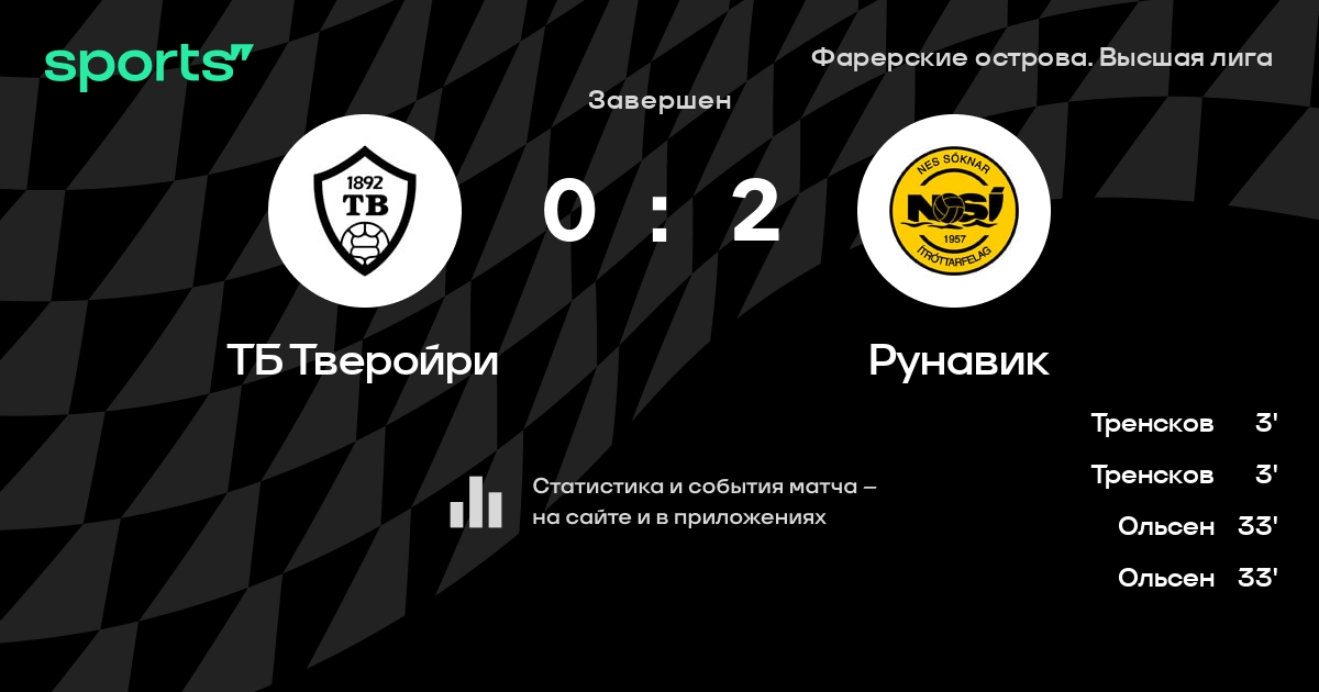 ТБ Тверойри – Рунавик: Рунавик не проигрывает в 8 последних матчах против этого соперника