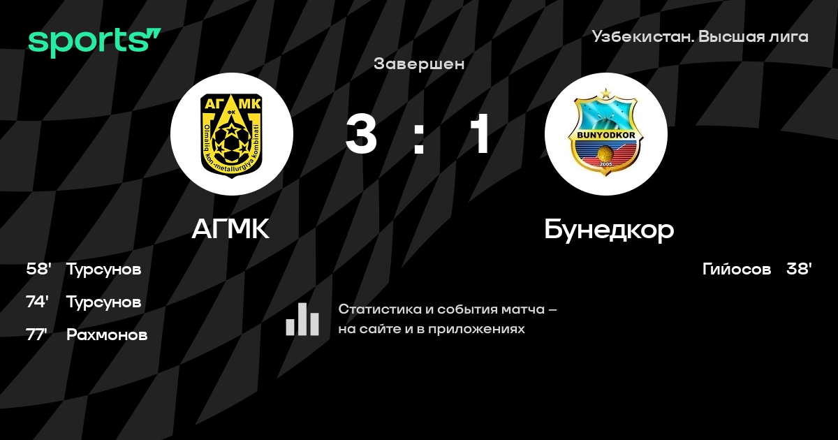 АГМК – Бунедкор: АГМК побеждает в 4 последних очных матчах