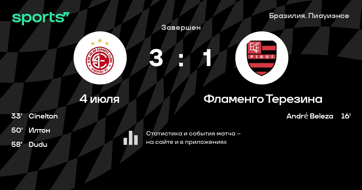 4 июля – Фламенго Терезина: 4 июля не пропускает в 3 последних матчах против этого соперника