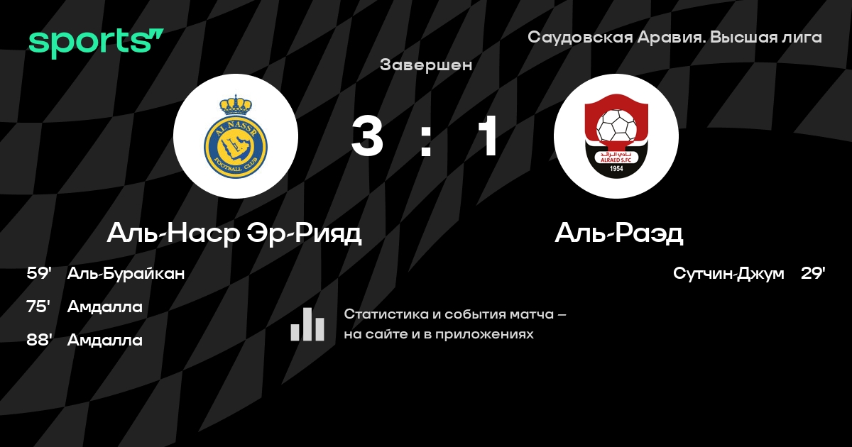 Аль-Наср Эр-Рияд – Аль-Раэд: Аль-Наср Эр-Рияд не пропускает в 2 из 7 последних матчей против этого соперника