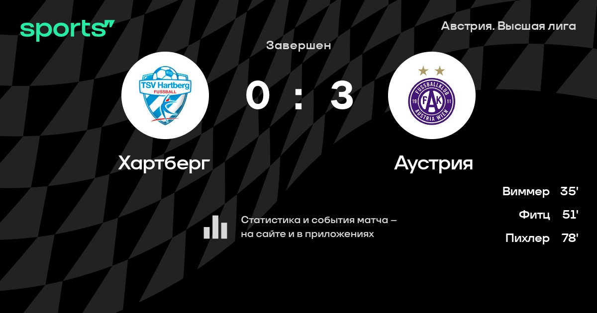 Хартберг – Аустрия: Хартберг не проигрывает в 8 из 10 последних матчей против этого соперника в турнире «Австрия. Высшая лига»