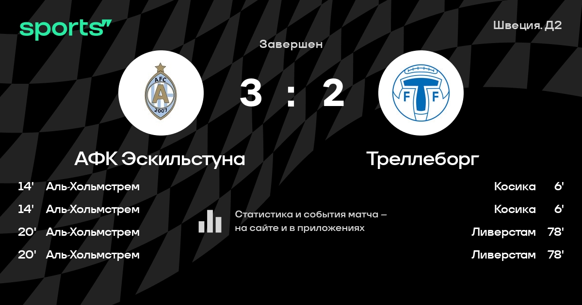 | 9 | АФК Эскильстуна | 30 | 11 | 7 | 12 | 41 | 41 | 0 | 40 | ||