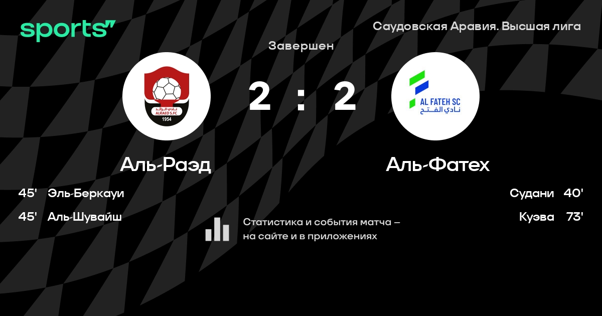 Аль-Раэд – Аль-Фатех: Аль-Фатех не проигрывает в 5 из 7 последних матчей против этого соперника в гостях в турнире «Саудовская Аравия. Высшая лига»