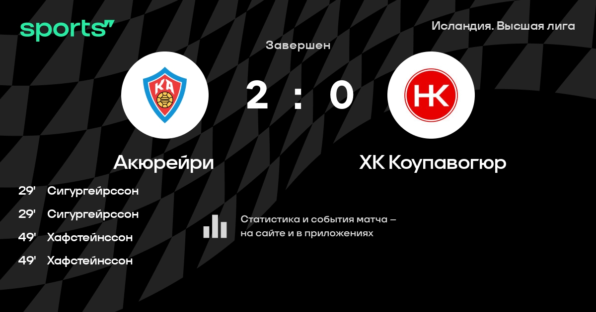 Auðunsson - Бркович, Квист, Thorisson - Стейнгримссон, Стефанссон, Родри, Бребельс, Хафстейнссон - Адальстейнссон, СигургейрссонЗапасные: Джогатович, Árnason, Хаукссон, Хейкссон, Адальстейнссон, Торстейнссон, Тоуриссон