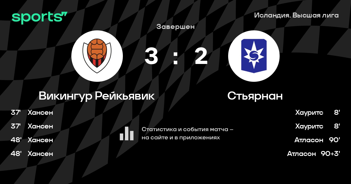 Викингур Рейкьявик – Стьярнан: Стьярнан забивает в 15 последних матчах против этого соперника