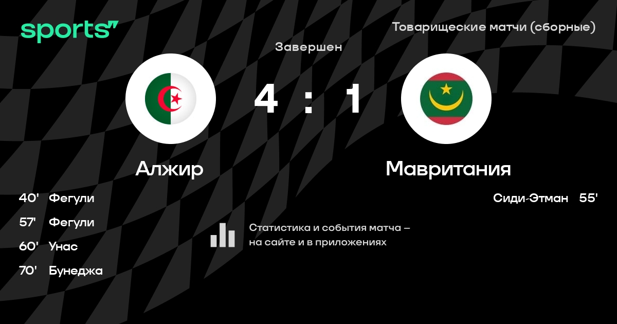 Алжир – Мавритания: Алжир побеждает в 4 последних очных матчах в турнире «Товарищеские матчи (сборные)»