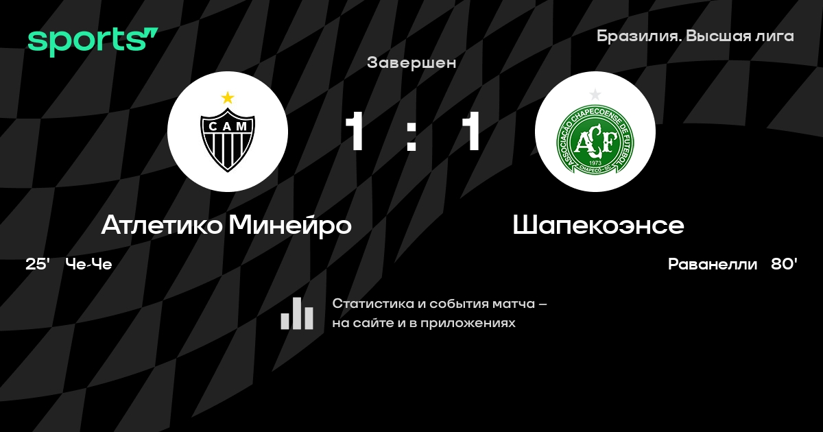 Атлетико Минейро – Шапекоэнсе: Шапекоэнсе не проигрывает в 6 из 8 последних матчей против этого соперника
