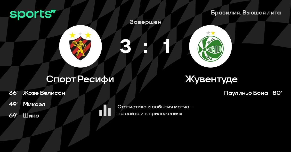 Спорт Ресифи – Жувентуде: Жувентуде не проигрывает в 6 из 7 последних матчей против этого соперника