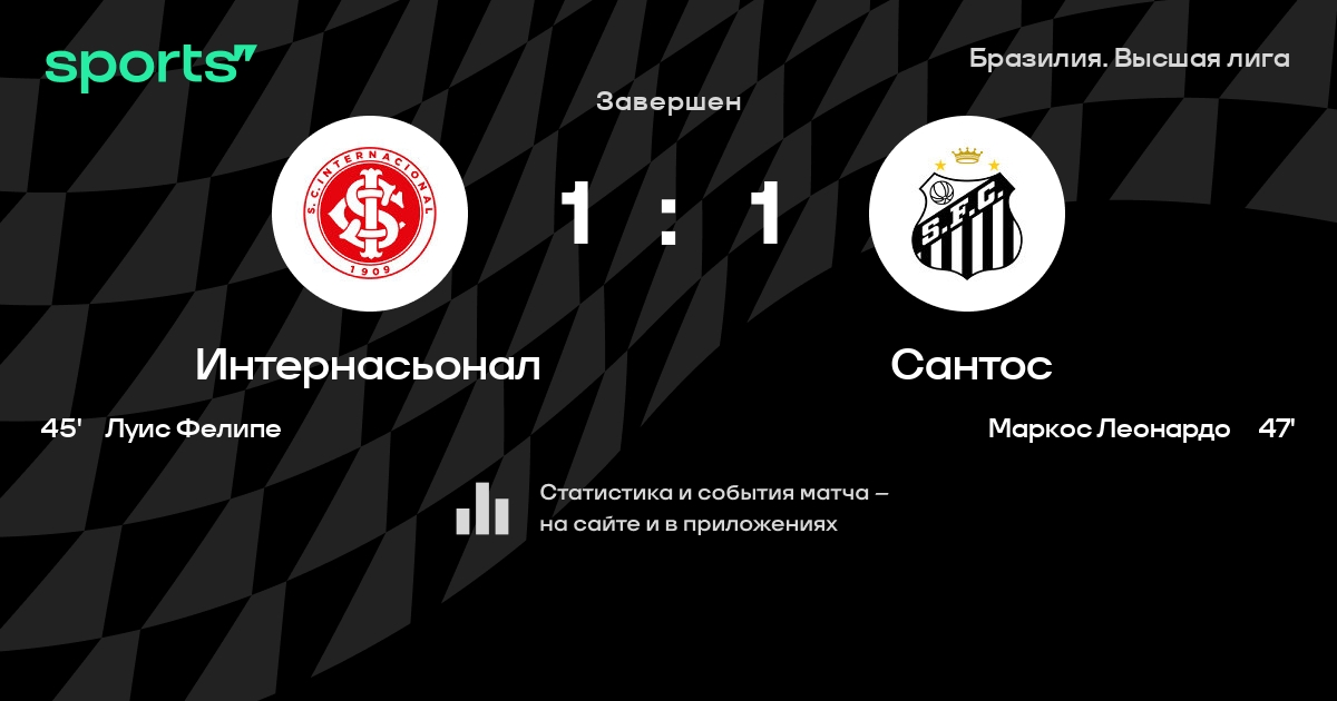 Интернасьонал – Сантос: Сантос не проигрывает в 5 из 7 последних матчей против этого соперника
