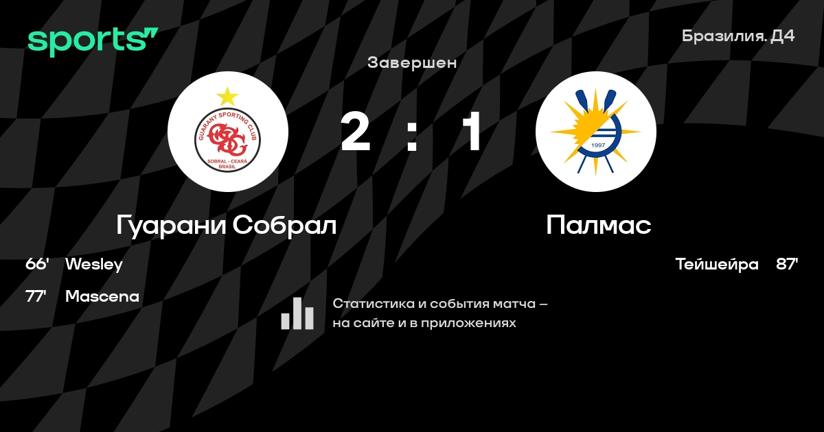 В последних 5 играх Гуарани Собрал забивает в среднем 1.40 гола за игру