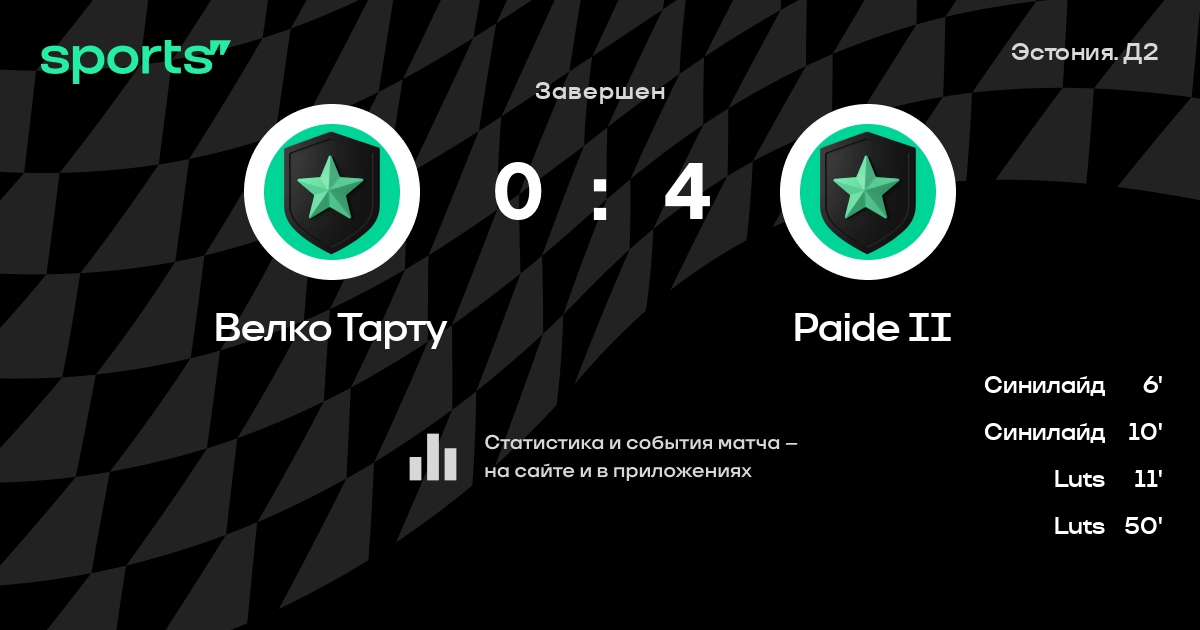 Велко Тарту – Paide Linnameeskond II: Велко Тарту забивает в 4 последних матчах против этого соперника